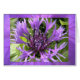 This bachelor's button is open to all above it, sitting like a crown and framed by pansy petals. Bachelor's buttons are associated with blessedness and hope in love. This particular blossom is violet in colour: the same colour as the seventh chakra, representing spirituality, connection, and the integration of all other aspects of life. The inscription inside the card says simply "the seventh chakra." Photography and design by StarAndrea.