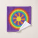 This funky towel set features a groovy graphic pattern inspired by the 1970s with overlapping discs in a rainbow of colours centred with a sun with slightly twisted rays. Edit design to change the purple background hue.