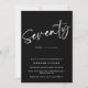 This is a simple and modern 70th surprise birthday party invitation. It is a simple and stylish handwritten script design in classic black and white. Please contact the designer for any queries about this design.