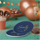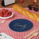 This custom paper plate will add stylish detail to the gold 70th birthday party. This design features a simple chic brush script "Seventy" with custom text on a navy blue background. Matching 70th birthday invitations and party supplies are available in my shop BaraBomDesign.