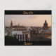 Postcard with photo of skyline of the city of Seville at sunset, including the cathedral and Giralda.