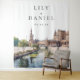 This elegant Seville Spain watercolor wedding photo booth backdrop can be personalized with your information in modern typography. Designed by Thisisnotme©