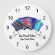 This sewing themed wall clock is printed with a cute colourful image of a fabric stash and scissors with text caption "Sew Much Fabric, Sew Little Time". Edit the text if desired in the easy Zazzle editor to personalise for your favourite sewing or quilting enthusiast. Great wall decor gift for personal sewing room or business space in your choice of round or square styles. See other items in this same design in Patchpourri shop at Zazzle.