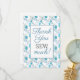 A beautiful blue patterned sewing and quilting Thank you flat card with a sewing machine, tailors dummy, scissors threads, bobbins and pins all on a white background . The text box wording can be amended to customise the card. The text currently says " Thank you sew much!" A fun way to say thanks from / to a sewer dressmaker or quilter. Perfect for your quilting or sewing group.