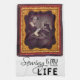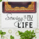 Real photograph of a Victorian woman hard at work on her 'state-of-the-art' sewing machine, along with a fun custom logo: Sewing is My life!