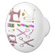 Add a decorative accent to your sewing drawer with a ceramic knob. Sewing machine, thread, scissors, and other sewing craft accessories on this unique and custom design art for yourself or great as a gift idea.