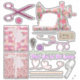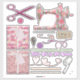A collage of sewing themed stickers. Seing maching, fabric, scissors, thread, buttons and more. Perfect for crafting, scrapbooking and gifts.cute and cosy