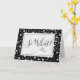 Sewing needle with thread and black stitches frame on black and white floral print for 70th birthday.