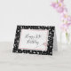 Sewing needle with red thread and red-stitched frame on black and white floral pattern for 80th birthday.