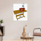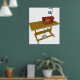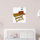 A sewing table with a sewing machine on it. This design looks really effective on these Poster