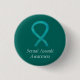 Sexual Assault awareness cause uses a teal ribbon.  The awareness ribbon pin features the painting of a teal awareness ribbon on a custom button pendant.  The awareness pendant notes "Sexual Assault Awareness".   The teal awareness ribbon art lapel pins or buttons can be customised with personalised messages to make great cause buttons for fundraiser pendants, awareness pin gifts, or other special pendant events or awareness lapel pin for the cause's occasions.