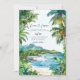 This wedding invitation features a painting of watercolor Seychelles. Easily edit *most* wording to meet your event needs. You can change the background colour and add your own photo to the backside.