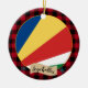 Seychelles, Red buffalo plaid & Seychelles Flag Ceramic Tree Decoration