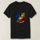 I give wanted to give this a 4 instead of a 5 because these Basic DARK T0shirts run unexpectedly SLIM or Narrow. Which is great if you do not have a potbelly, but I have a paunch. It isn't the shirt's fault that I've got a beer belly. The design and shirt itself is a quality cotton shirt. The color is more of a deep purple, but still a very pretty color. The Basic DARK T-shirts run a bit SLIMMER than the Basic Ts. The neck is a fraction narrower (or seems to be narrower) also. I'm a paunchy middle-aged woman and my neck is 12 inches (31cm) thick and the neckline fell about the same as in the photo of the man, and I had the desire to tug it a bit. So if you're a thick necked man or like loose shirts, be aware these are slimmer shirts. Once I get rid of my lockdown paunch it'll look great. The shirt washed well in cold water with no apparent bleeding. We don't have a dryer, so it hung dry. Did not shrink. Love the colors and the design. The design looks smaller on my shirt than it does on the model on-line. But still, it looks good on the shirt. The printing looks as it does on the model, just the size seems fractionally smaller. Washed garment in cold water, hung dry and design appeared unaffected.