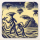 Step into a world of imagination and wonder with this unique digital artwork! This piece, done in a striking woodblock style, transports you to an alien landscape teeming with otherworldly creatures. The landscape is set against the backdrop of a large planet. This one-of-a-kind piece is not just an artwork, but a conversation starter. It’s perfect for anyone looking to add a touch of otherworldly charm to their space. Don’t miss out on the opportunity to own this unique piece of digital art that blurs the line between reality and fantasy!