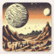SF Mars Landscape Woodcut 1 Square Paper Coaster