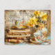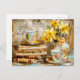 Shabby chic Daffodils on a Stacked antique Books Postcard