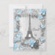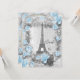 Elegant French Eiffel Tower Parisian Sweet 16 birthday party invitations for girls in glamourous blue, silver, black and grey with a beautiful cute printed shabby chic collage of romantic blue roses, spring flowers, stylish antique French advertising and the Eiffel Tower. On the reverse of the invites is a classy pretty printed off white lace and pearls mat for you to personalise. All of the text can be easily customised to meet your needs and you can change the font style, colour and size of font if you desire. If you need any assistance customising your product please contact me through my store and I will be happy to help. Pearl mat by ©Hazel Kinvig-Paul www.design-a-dream.co.uk PLEASE NOTE: All products on Zazzle have flat printed images.