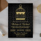 Amaze your guests with this elegant wedding invitation featuring a beautiful gold birdcage against a black damask background. Simply add your event details on this easy-to-use template to make it a one-of-a-kind invitation. Flip the card over to reveal a faux gold glitter texture on the back of the card.