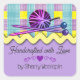 Shabby chic knitting crochet ball of yarn plaid square sticker