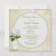 Elegant Bridal Shower invitations with a cute green and white glass Ball mason jar and pretty white hydrangea vintage flower illustration on a stylish antique shabby chic collage with beautiful white ornate decorations, a dragonfly, and faded writing on a stylish pale green harlequin pattern. On the reverse of the invites is a glamourous printed white pearls and lace mat with text for you to personalise with your party details. Classy, trendy, fashionable modern invites perfect for spring, summer, fall / autumn and winter showers. All of the text can be easily customised to meet your needs and you can change the font style, colour and size of font if you desire. If you need any assistance customising your product please contact me through my store and I will be happy to help. Pearl mat by ©Hazel Kinvig-Paul www.design-a-dream.co.