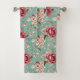 Shabby Chic Pink and White Florals on Teal Bath Towel Set