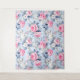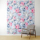 Aesthetic shabby chic pastel pink roses and white flowers in a seamless pattern on a light blue background.