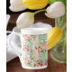 This vintage shabby-chic illustration print design is both elegant and beautiful. The design is on a old fashion looking background with flowers around in colours of light green, cream, light and darker pink and touches of peach. It's a wonderful addition to your collection of mugs and is perfect for bringing a new spring vibe into your home. You can add a touch of fancy to your morning coffee or use it when hosting a tea party with friends in the afternoon. It also makes for a great gift idea for Mother's Day or a friend's birthday. friend's birthday