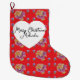 Shabby Floral Red Rose Roses Christmas Girls Name Large Christmas Stocking