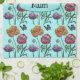 Shabby Poppy Red Purple on Aqua Customizable Name Tea Towel