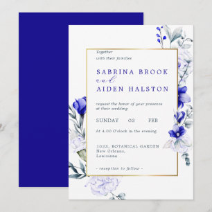 Shade Of Royal Blue Ivory Floral Wedding Invitation