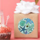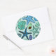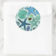 Shades Of Blue Seashells And Starfish Pattern Classic Round Sticker