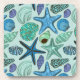 Shades Of Blue Seashells And Starfish Pattern Coaster