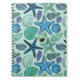 Shades Of Blue Seashells And Starfish Pattern Notebook