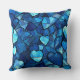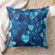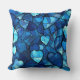 SHADES OF BLUE STAINED GLASS LOOK HEARTS CUSHION