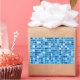 This product is made from a textured mosaic square tiles pattern consisting mainly of azure and other cool shades of blue with a sprinkling of white throughout. This unique abstract "watery" design has the appearance of glistening wet bathroom tiles.