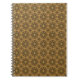 This notebook features an abstract repeating tiled pattern in shades of gold and brown.