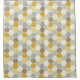 Honeycomb pattern shower curtain in shades of gold, white, and grey.