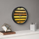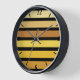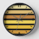 Round Wall Clock with black wooden frame, wall art decoration and home furnishing decor accessory printed with Shades Of Golden Yellow Stripes On Black artwork design by TheFabricSeal at Zazzle.com #ZazzleMade TheFabricSeal©️Original.