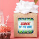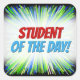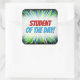 This vibrant design features a pattern of lines coloured different shades of green and blue bursting outward from a central point. It also features the message, "STUDENT OF THE DAY!".