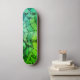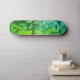 This original hades of green retro image of a srt of chevron cobweb is produced from my watercolor pencil painting. This image is a section taken from a photograph of my green lady painting. The painting started out as a sort of doodle and then turn into a little piece of of original artwork. I think this street art style abstract design really stands out on this original deck and I'm sure she'll be loved by everyone who likes originals treet art style art. The text on this uniue skateboard deck is customisable. This colourful image has been digitally enhanced to give it a cartooned effect.