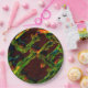 Image that in green parts resembles something forestry of places with dark green flora due to strong humidity, such as Amazon, and parts in reddish yellow that resemble fire. In this image, I liked a lot of very bright green dots that cause a contrast that stands out.