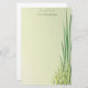 Stationery with predominantly green and yellow tones of grass-like stalks along the right border. You can customise or remove one or both of the the text lines at the top.
