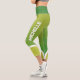 These modern workout leggings feature trendy shades of green with customisable name on both sides in white all caps font