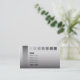 Shades of grey business card with grey gradient blend background and stripe and small squares that go from light grey to dark grey. Customise your text. If you don't need one of the text fields just delete it.