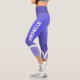 These modern workout leggings feature trendy shades of purple with customisable name on both sides in white all caps font. The waistband is solid purple