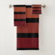 Bath Towel Set Of 3 decorative bathroom amenity and home furnishing decor accessory printed with Shades Of Red Stripes On Black artwork design by TheFabricSeal at Zazzle.com #ZazzleMade TheFabricSeal©️Original.