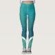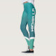 These modern workout leggings feature trendy shades of blue and bright turquoise with customisable name on both sides in white all caps font.