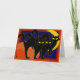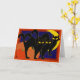 Illustrated black cats and pumpkins with pattern borders are featured on this Halloween greeting card.