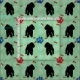 A silhouette Poodle with a scattering of bones and paw tracks. This design is intended to tile seamlessly.